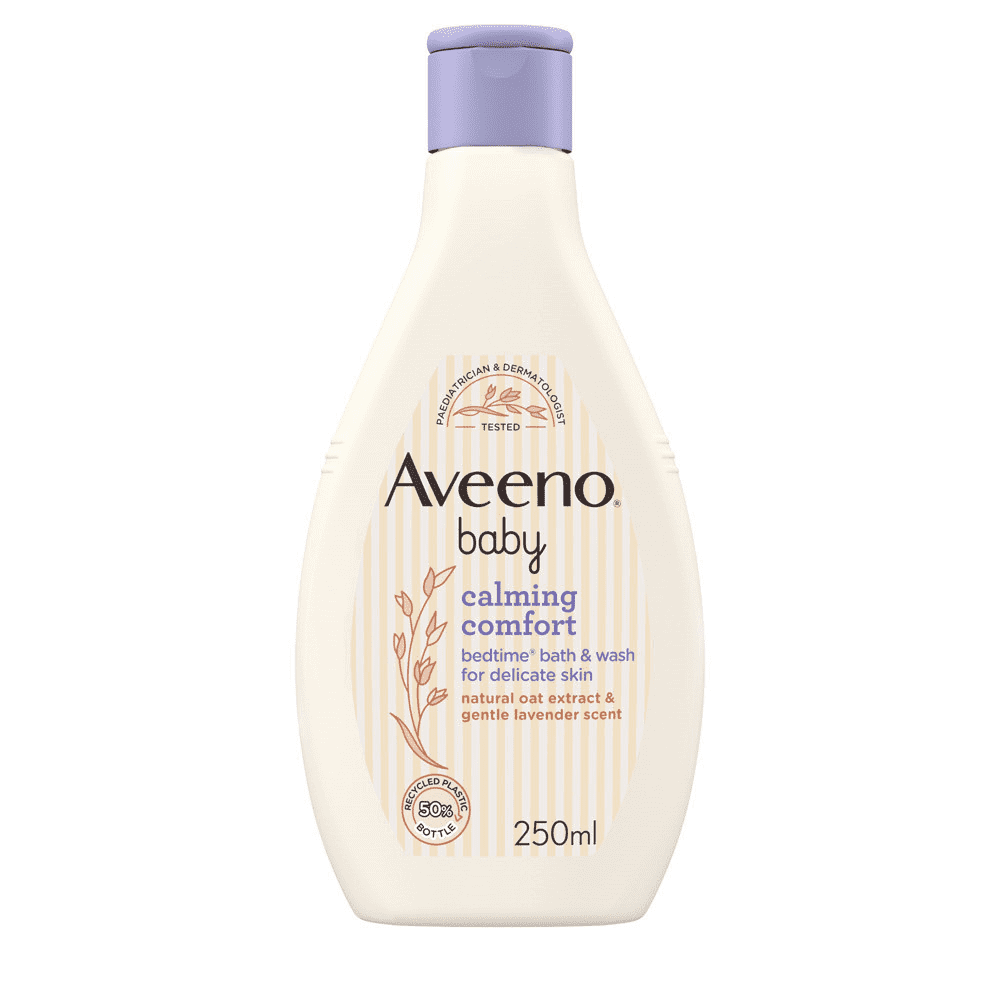 AVEENO® Baby calming comfort® bedtime® bath & wash gently cleanses delicate baby skin without drying and helps calm your baby before bedtime. With soothing oat extract and the calming scent of lavender, leaving skin feeling clean and nourished. Specially formulated for baby’s delicate skin. For a complete bedtime routine, follow with a relaxing massage using AVEENO® Baby calming comfort® bedtime® lotion.